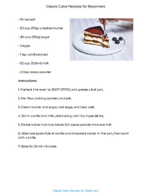 Classic Cakes Recipe for Beginners - eBook PDF